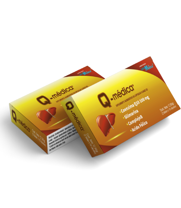 Suplemento alimenticio en cápsulas a base de Coenzima Q10, Silimarina, Complejo B y Ácido Fólico.